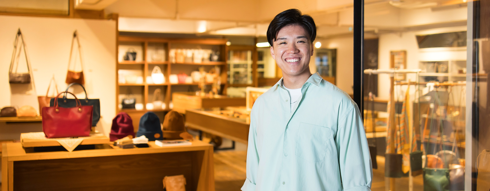 入社後は、まずベルギーのファッションブランド「SCAPA」に配属されて営業としてスタートし、9か月後にイタリアの革製品ブランド「IL BISONTE」に異動しました。現在の業務は店舗運営の管理で、売上予算などの数字や店舗スタッフの採用活動など人員の管理、経費精算をはじめとする事務的な仕事をしています。
